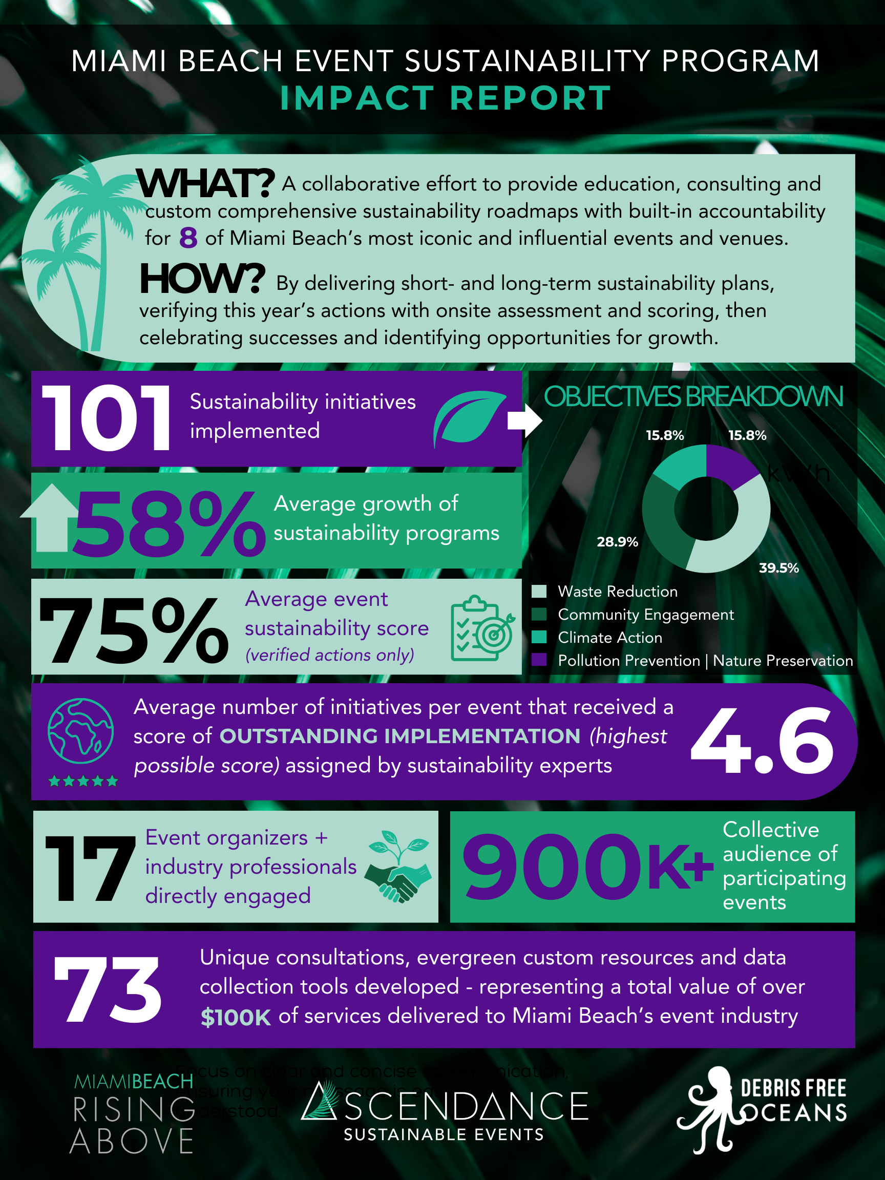 Our project created a first-of-its-kind (in our region!) event industry collaboration between private, non-profit and municipal sectors, to help large-scale events in Miami Beach take the next steps in their sustainability journeys - which ultimately translates to increased resiliency for the City and our community.